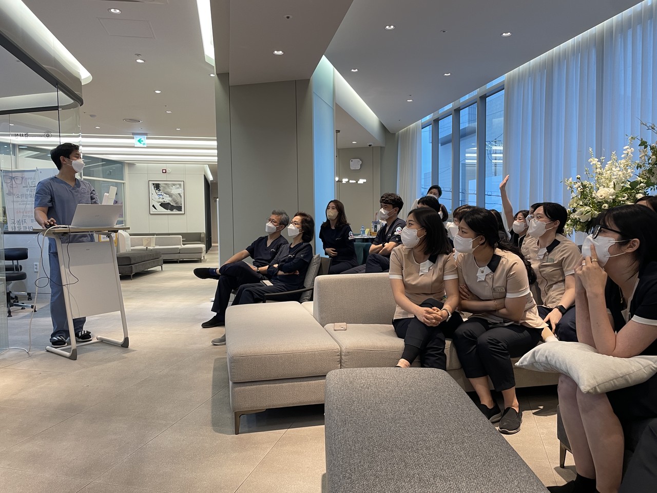 회의는 업무용 메신저, 유선 통화, 화상 회의를 통해 진행되며 컨설턴트가 방문하는 일정의 경우 병원의 담당자와 미리 일정을 협의합니다.